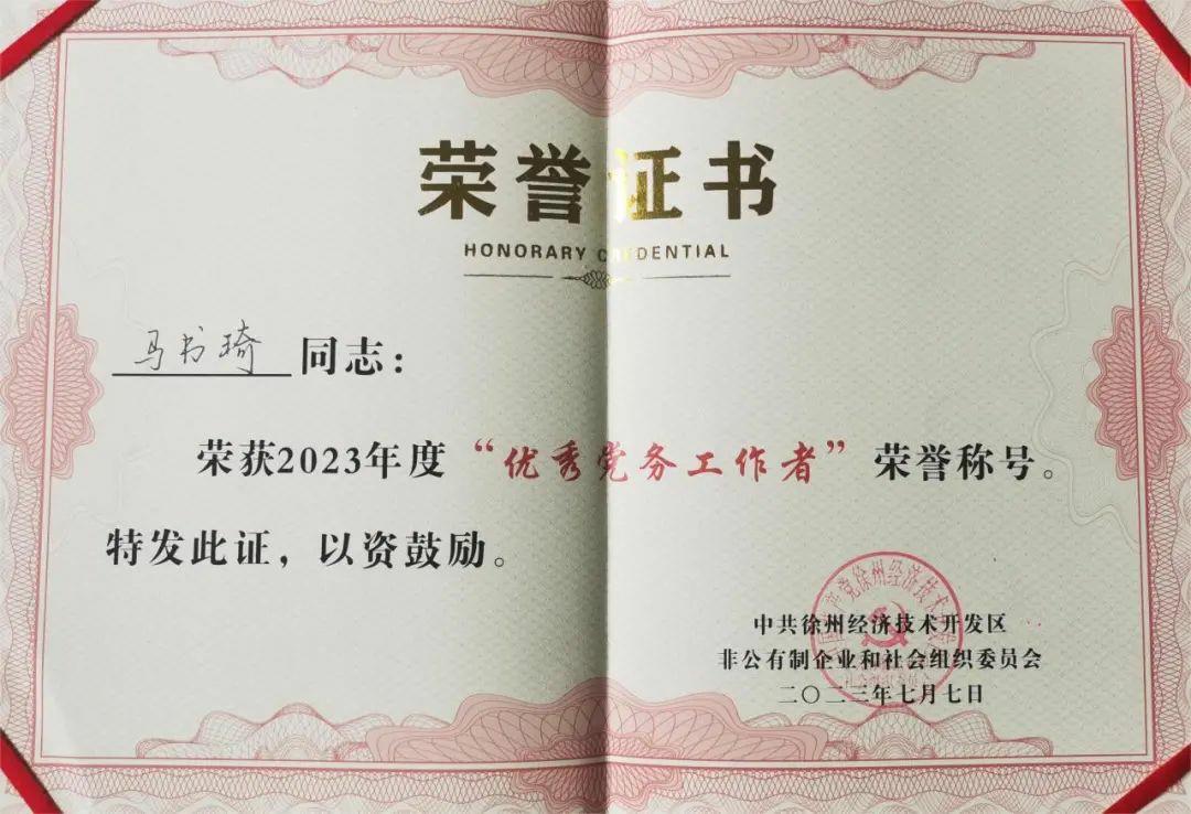 盛夏時節,喜訊傳來。為慶祝中國共產黨成立102周年,充分展現先進典型的精神風范,充分展示廣大黨組織和黨員在各條戰線、各個領域、各項工作中取得的豐碩成果。7月7日上午,徐州經濟技術開發區兩新黨委召開“兩優一先”表彰會,向受表彰的優秀黨員、優秀黨務工作者和先進基層黨組織頒發證書、獎章。