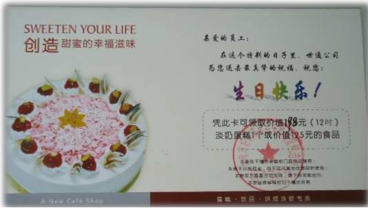 生日蛋糕,來自“家人”的祝福:公司管理部給公司每位過生日的員工發放一份生日蛋糕,充分體現了公司“以人為本”的經營理念。